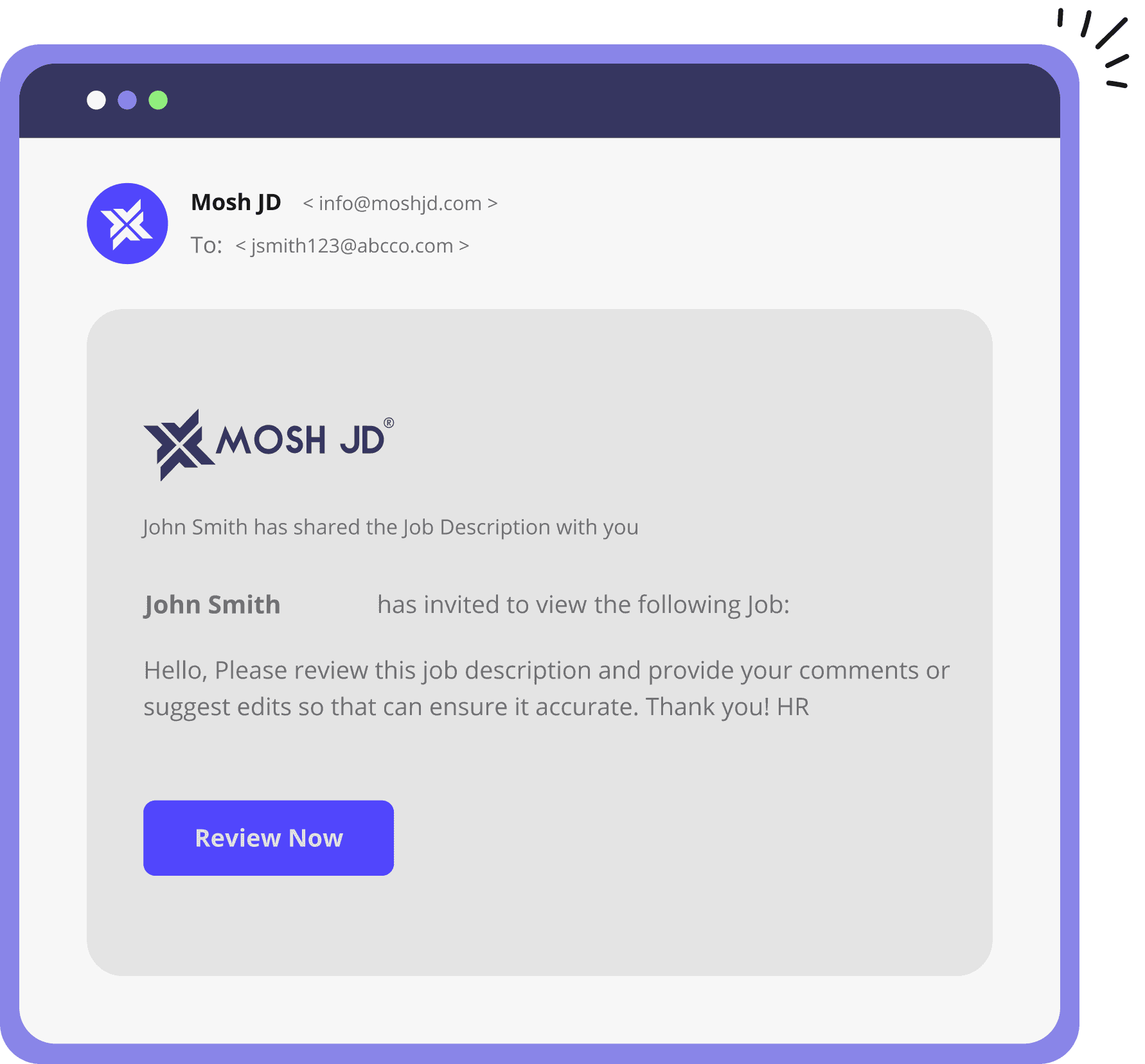 Avoid the headaches of managing users and resetting passwords. With Mosh JD collaborators can access the job description via a webpage to provide feedback with ease.