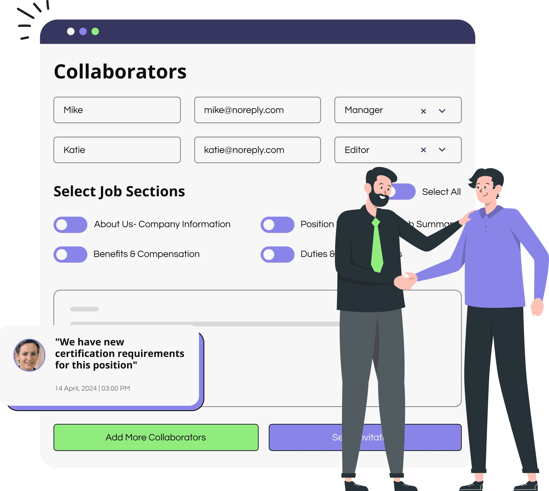Job accuracy relies on effective and consistent internal communication. We’ve simplified the process so you can easily ensure job skills and qualifications are accurate.