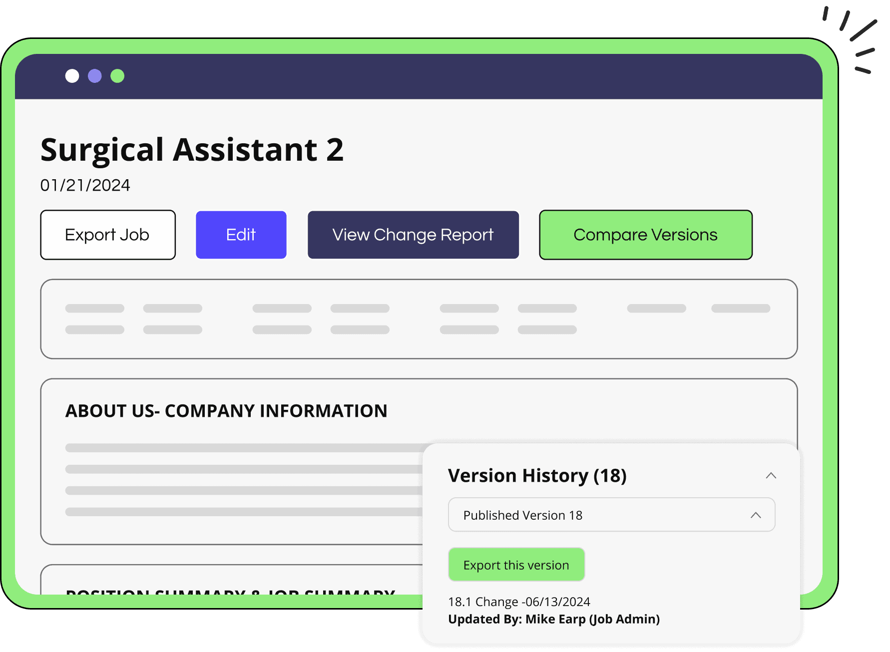 Maintain clarity on which job description is the most current. Quickly revert to or use past versions as templates when needed, saving time when creating or updating jobs.