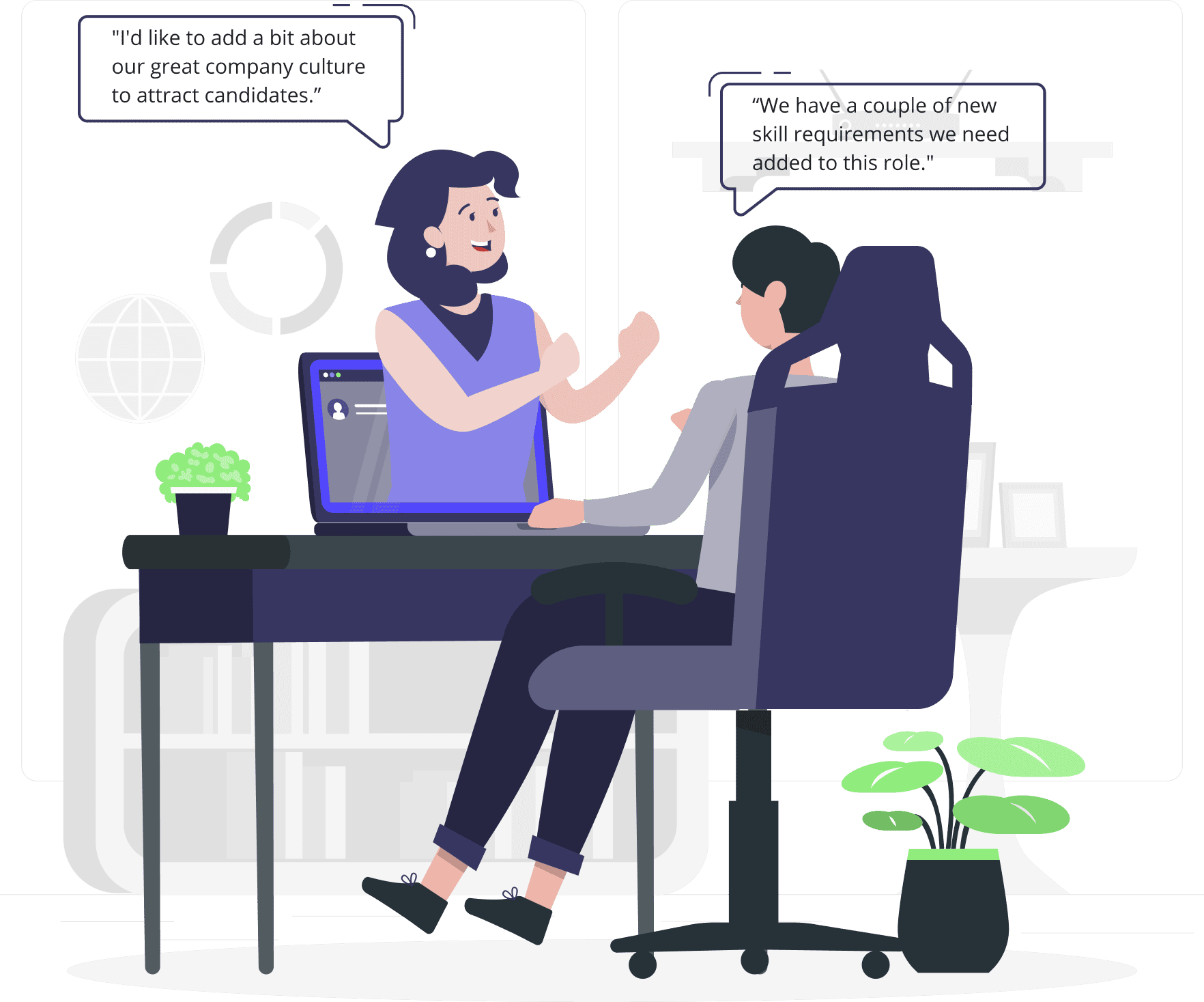 Our simple collaboration process improves internal communication so that compensation, HR, talent acquisition, hiring managers, candidates, & employees are aligned on role requirements.